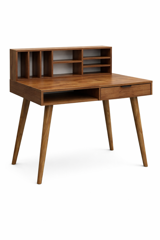میز تحریر کتابخانه با پایه‌های چوبی به همراه کشو – ملامینه ضدخش