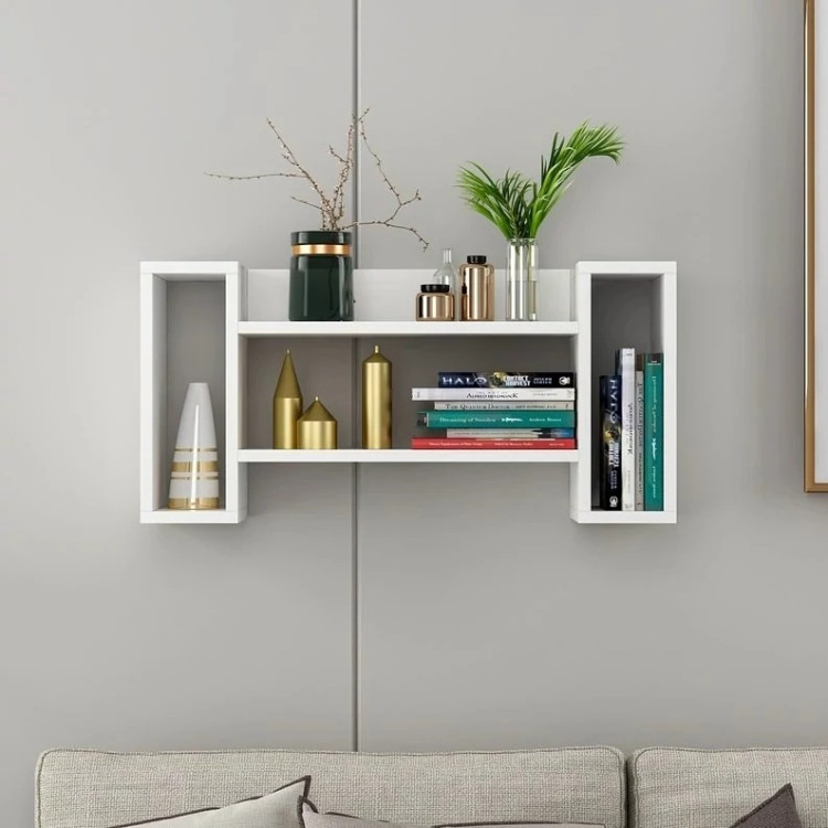خرید کتابخانه دیواری مدرن | شلف دیواری طرح دار رنگ سفید مدل دیواری با طبقه در اندازه 80×40×20